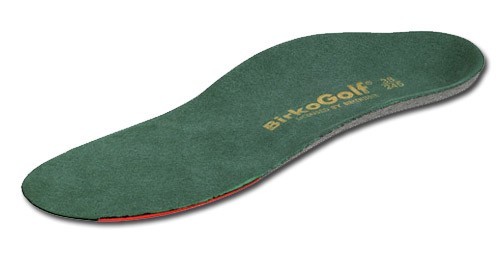 Birko Golf footbed. Specially designed to meet the needs of golfers. The anatomic arch provides optimum support and guidance for the foot when walking. The red, shock-absorbing forefoot section is abrasion proof and slip resistant, ideally matched to the swing phase when teeing off.