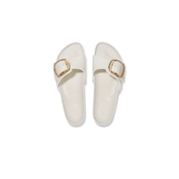 This is a new and modern interpretation of the Birkenstock classic Madrid. This version features our popular Big Buckle made from a stainless synthetic material and makes an impression with its durability and minimalist design. Modeled on the cork sandal, it is made from the ultra-lightweight and highly flexible synthetic material EVA. The high-quality, odor-neutral EVA has been tested for harmful substances and combines numerous positive attributes: it is very light, highly elastic, shock-absorbent, water-resistant, and skin-friendly.